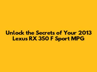 Hey there, car enthusiasts and savvy Lexus owners! Today, we're diving deep into a topic that's on everyone's mind when they're behind the wheel: fuel economy. Specifically, we're focusing on the 2013 Lexus RX 350 F Sport MPG. You've got this awesome luxury SUV, a real head-turner with that sporty F Sport flair, but you're probably wondering, "How am I doing on gas?" Well, buckle up, because we're about to break down everything you need to know to get the most miles out of every gallon. We'll explore what affects your MPG, how the F Sport model stacks up, and some nifty tricks to boost your fuel efficiency. So, let's get this ride started and make sure your Lexus RX 350 F Sport is running as efficiently as possible!
