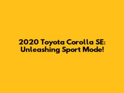 Hey Corolla fans! Let's dive into the exciting world of the 2020 Toyota Corolla SE and explore what its Sport Mode has to offer. If you're looking to add a little pep to your daily drive, you've come to the right place. We'll break down everything you need to know about this feature, from how it works to when you should use it.