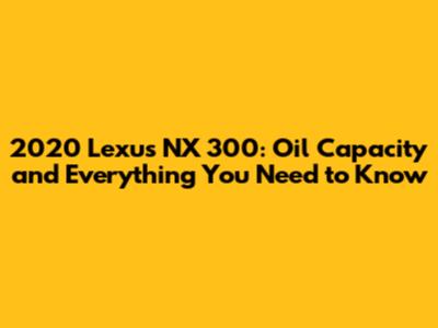 Knowing the 2020 Lexus NX 300 oil capacity and understanding how to properly maintain your engine's oil is crucial for keeping your vehicle in top shape. Remember, the 2020 Lexus NX 300 oil capacity is approximately 4.8 quarts (4.5 liters) with a filter change, and the recommended oil type is SAE 0W-20 synthetic oil. Regularly check your oil level, follow the recommended maintenance schedule, and address any oil-related issues promptly.