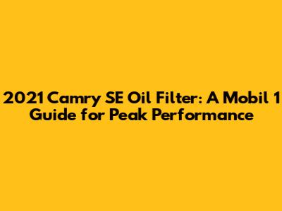 2021 Camry SE Oil Filter: Mobil 1 Guide