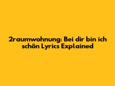 2raumwohnung: Bei Dir Bin Ich Schön Lyrics Explained