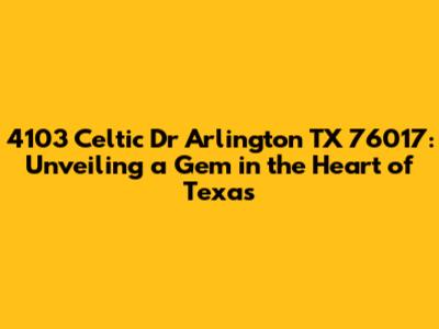 Hey guys! Ever stumbled upon an address that just sounds like home? Well, 4103 Celtic Dr in Arlington, Texas, might just be that place for you. Let's dive deep into what makes this location so special, from its real estate appeal to the vibrant community surrounding it. Whether you're a potential buyer, a curious neighbor, or just someone who appreciates a good piece of real estate, this article is your ultimate guide.