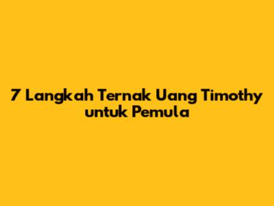 7 Langkah Ternak Uang Timothy Untuk Pemula