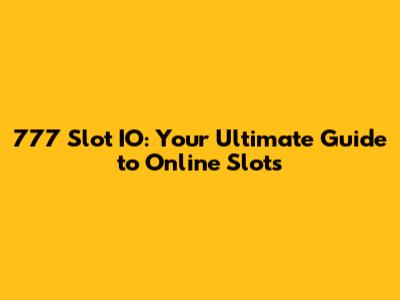 777 Slot IO: Your Ultimate Guide To Online Slots