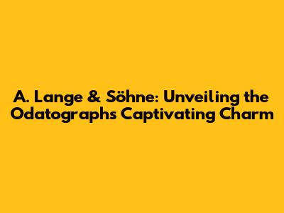 A. Lange & Söhne: The Odatograph's Allure
