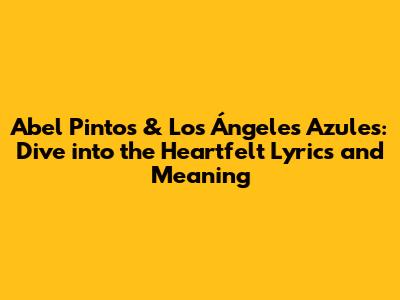 Hey guys! Ever wondered about the magic that happens when Argentine pop sensation Abel Pintos teams up with the iconic Mexican cumbia group Los Ángeles Azules? It's pure musical gold! Their collaborations are not just songs; they're stories wrapped in rhythm and melody, resonating deeply with listeners across Latin America and beyond. Let's get into what makes their joint tracks so special, exploring the lyrics and meanings that tug at our heartstrings.