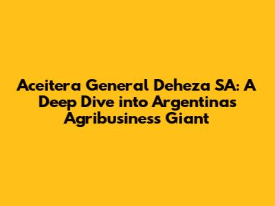 Aceitera General Deheza SA: A Deep Dive Into Argentina's Agribusiness Giant
