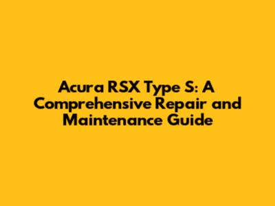 Acura RSX Type S: Repair And Maintenance Guide