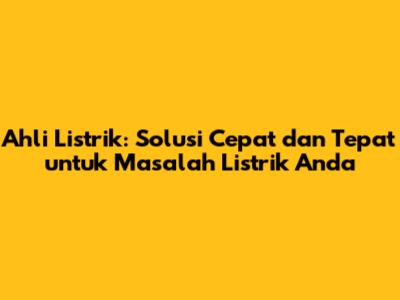 Ahli Listrik: Solusi Cepat Dan Tepat Untuk Masalah Listrik Anda