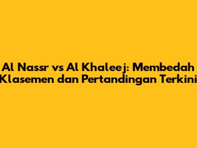 Klasemen Al Nassr vs Al Khaleej memberikan gambaran penting tentang performa kedua tim dalam kompetisi. Al Nassr, dengan skuad bertabur bintang dan ambisi tinggi, selalu menjadi penantang gelar. Sementara itu, Al Khaleej, meskipun tidak sepopuler Al Nassr, selalu memberikan perlawanan sengit dan berusaha untuk meraih hasil terbaik. Dalam perjalanan mereka, kita telah melihat: (1) Performa: Bagaimana kedua tim bermain dan berjuang sepanjang musim. (2) Head-to-Head: Catatan pertemuan yang memberikan gambaran tentang dominasi masing-masing tim. (3) Prediksi: Perkiraan hasil pertandingan berdasarkan analisis performa dan faktor-faktor lainnya. Pentingnya Memahami Klasemen: Klasemen bukan hanya daftar urutan, tetapi cerminan kerja keras dan strategi yang diterapkan oleh sebuah tim. Dengan memahami klasemen, kita dapat: (1) Menilai Performa: Melihat bagaimana kedua tim bermain dan berjuang. (2) Memprediksi Pertandingan: Mengidentifikasi potensi hasil pertandingan. (3) Memahami Persaingan: Melihat rivalitas antara kedua tim dan tim-tim lainnya. Mari kita terus ikuti perjalanan Al Nassr vs Al Khaleej dengan penuh semangat. Dukung tim favorit Anda dan nikmati setiap momen pertandingan! Jangan lupa untuk selalu mengikuti perkembangan klasemen dan berita terbaru seputar sepak bola.