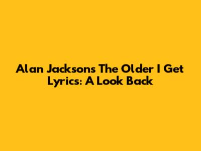 Alan Jackson's 'The Older I Get' Lyrics: A Look Back