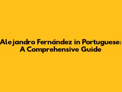 Alejandro Fernández In Portuguese: A Comprehensive Guide