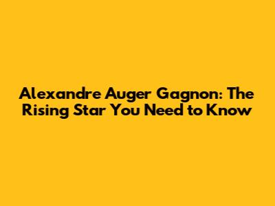 Alexandre Auger Gagnon: The Rising Star You Need To Know