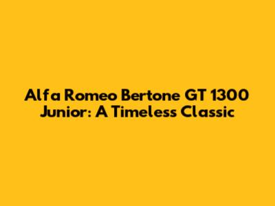 Alfa Romeo Bertone GT 1300 Junior: A Classic's Guide