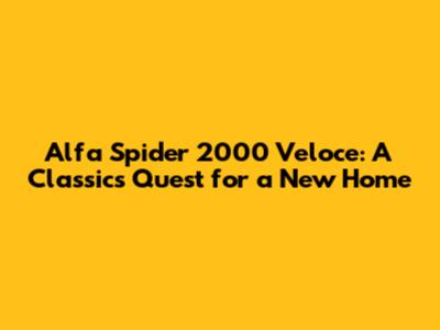 Alfa Spider 2000 Veloce: A Classic's Quest For A New Home