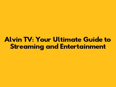 Alvin TV: Your Ultimate Guide To Streaming And Entertainment