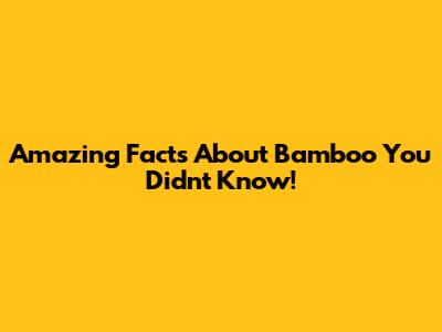 Amazing Facts About Bamboo You Didn't Know!