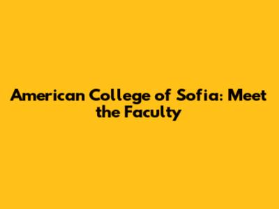 American College Of Sofia: Meet The Faculty