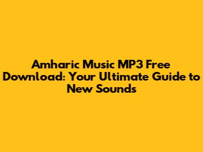 Amharic Music MP3 Free Download: Your Ultimate Guide