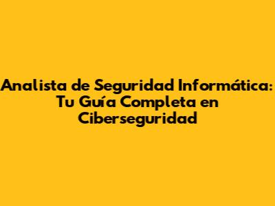 Analista De Seguridad Informática: Tu Guía Completa En Ciberseguridad