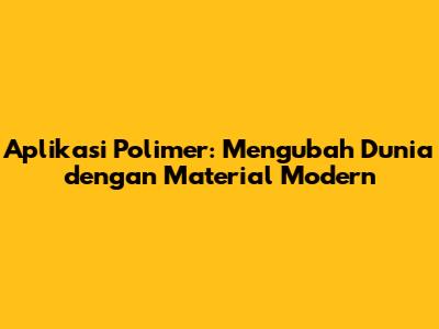 Aplikasi Polimer: Solusi Material Inovatif Dalam Kehidupan