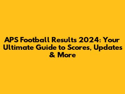 APS Football 2024: Scores, Updates & What You Need To Know
