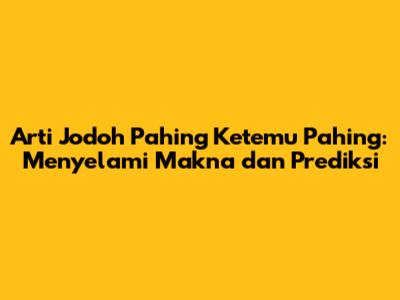 Jadi, gimana, guys? Sudah mulai tercerahkan tentang arti jodoh Pahing ketemu Pahing? Pada intinya, hubungan jodoh Pahing ketemu Pahing memiliki potensi yang besar untuk sukses, asalkan kedua belah pihak mau berusaha untuk saling memahami, berkomunikasi dengan baik, dan saling mendukung. Ingat, ramalan hanyalah sebuah gambaran, yang terpenting adalah usaha dan komitmen kita untuk membangun hubungan yang bahagia.