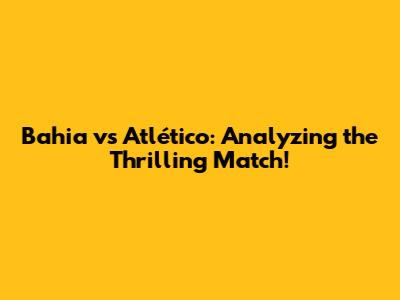 Bahia Vs Atlético: Analyzing The Thrilling Match!