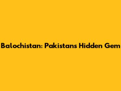 Balochistan: Pakistan's Hidden Gem