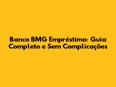 Banco BMG Empréstimo: Guia Completo E Sem Complicações