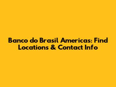 Banco Do Brasil Americas: Find Locations & Contact Info