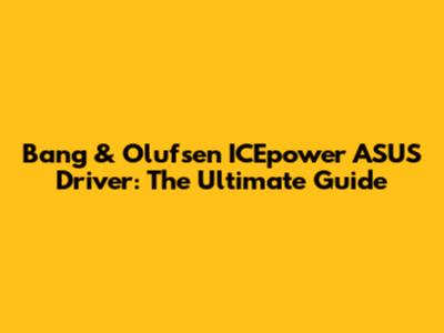 Bang & Olufsen ICEpower ASUS Driver: The Ultimate Guide
