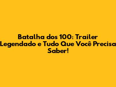 A melhor forma de encontrar o trailer legendado de "A Batalha dos 100" é procurar no YouTube ou em outras plataformas de vídeo. Basta digitar "A Batalha dos 100 trailer legendado" na barra de busca e você encontrará diversas opções. Além disso, a Netflix geralmente disponibiliza o trailer em seu canal oficial, com legendas em vários idiomas.