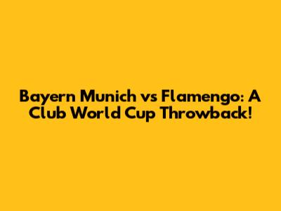Bayern Munich Vs Flamengo: A Club World Cup Throwback!