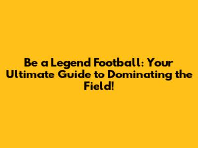 Be A Legend Football: Your Ultimate Guide