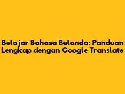 Belajar Bahasa Belanda: Panduan Lengkap Dengan Google Translate