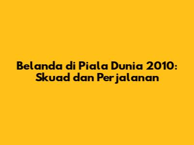 Belanda Di Piala Dunia 2010: Skuad Dan Perjalanan