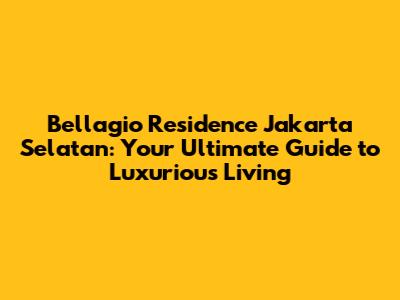 Bellagio Residence Jakarta Selatan: Your Ultimate Guide