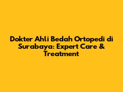 Best Orthopedic Surgeons In Surabaya: Expert Care & Treatment
