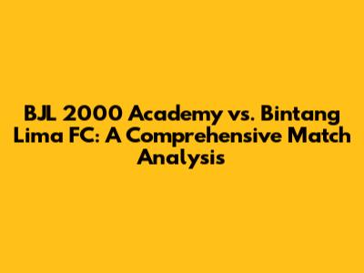 Hey guys, let's dive into a detailed analysis of the exciting match between BJL 2000 Academy and Bintang Lima FC! This match was filled with thrilling moments, impressive plays, and nail-biting finishes. We'll be breaking down every aspect of the game, from the key strategies employed by both teams to the individual performances that stood out. Get ready for a deep dive that will give you a complete picture of what went down on the pitch. We'll cover everything, from the initial lineup choices to the game-changing substitutions, and the impact of the key plays on the final score. So, grab your snacks, settle in, and let's get started with a play-by-play of the match. This analysis aims to give you a complete understanding of how the teams played, and what factors led to the eventual outcome, so you can sound like an expert during the next water cooler chat! So buckle up, because we are getting ready to enter the world of strategy and individual performances that defined the match. We'll see how the teams played, and what factors led to the eventual outcome. We'll be looking at everything from the initial lineup choices to the game-changing substitutions, so you'll get a detailed rundown. Prepare to learn about the strategies and the standout individual plays. Let's make sure we understand the whole picture, alright?