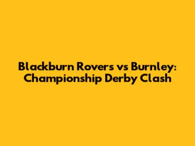 Blackburn Rovers Vs Burnley: Championship Derby Clash