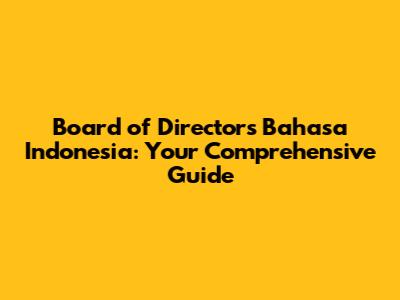 Board Of Directors Bahasa Indonesia: Your Comprehensive Guide