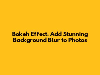 Bokeh Effect: Add Stunning Background Blur To Photos