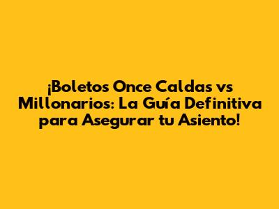 Boletos Once Caldas Vs Millonarios: ¡Compra Aquí!