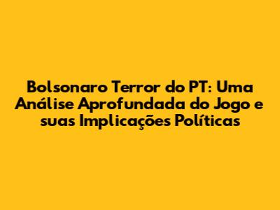 Bolsonaro Terror Do PT: Análise Do Jogo E Impacto Político