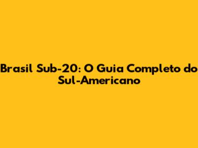 Brasil Sub-20: O Guia Completo Do Sul-Americano
