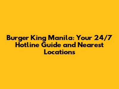 Burger King Manila: 24/7 Hotline & Locations
