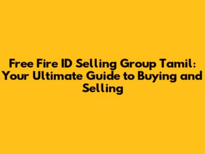 Buy & Sell Free Fire IDs: Tamil Community Guide