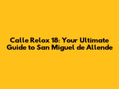 Hey guys! Planning a trip to the enchanting San Miguel de Allende? You've picked a fantastic destination! Known for its stunning architecture, vibrant art scene, and charming cobblestone streets, this UNESCO World Heritage site is a must-visit. And if you're looking for a central location to experience all this, you'll want to know about Calle Relox 18. This address isn't just a location; it's a gateway to the heart of San Miguel. So, let's dive into everything you need to know about Calle Relox 18 and why it should be on your radar. Whether you're a first-time visitor or a seasoned traveler, this guide will provide valuable insights to make your trip unforgettable.