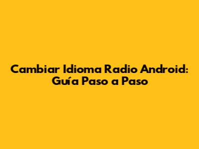 Cambiar Idioma Radio Android: Guía Paso A Paso
